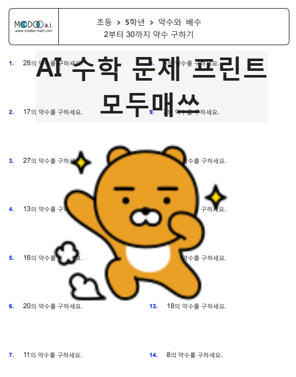 초5 수학 > 약수 구하기(2부터 30까지) 프린트 학습지