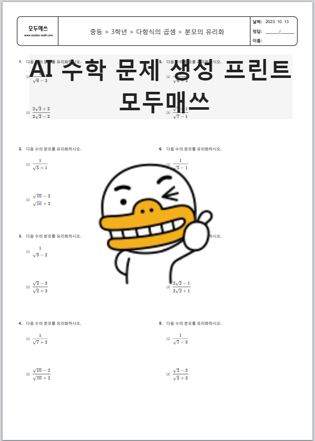 아래 이미지를 클릭하게 되면 AI 기반 초중고 수학 문제 생성 사이트 '모두매쓰' 에서 해당 유형 문제가 새롭게 생성됩니다.