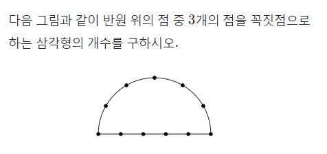 이 문제는 3개의 점을 꼭짓점으로 하여 만들 수 있는 삼각형의 개수를 구하는 문제입니다.