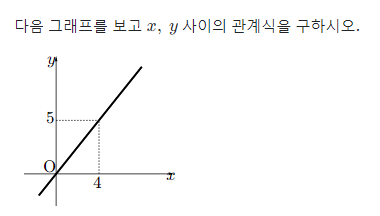 함수의 그래프의 시작이라고 할 수 있는 정비례 그래프 문제입니다. 중2에서는 일차함수라는 단원에서 다시 등장하는데요, 정비례 그래프는 함수의 시작이니만큼 꼼꼼히 학습하면 함수를 이해하는데 매우 큰 도움이 된다고 할 수 있어요.