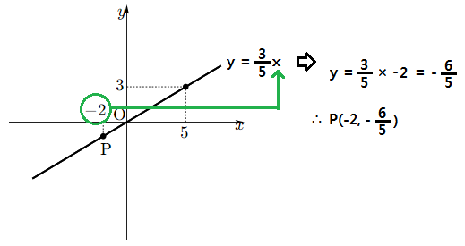 이제 정비례 관계식을 구하였으므로 이 식에 점 P의 x좌표를 대입하면 y좌표를 구할 수 있습니다.