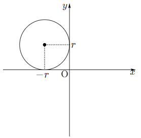 아마도 원의 중심을 (r,r)라고 한다면 반지름도 r이 될 것입니다.