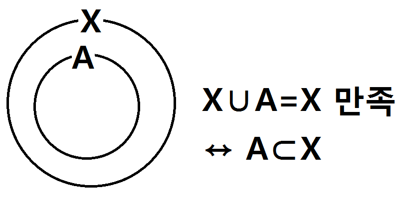 먼저 X∪A=X를 벤타이어그램으로 한번 표현해보면 포함관계를 쉽게 찾을 수 있어요.