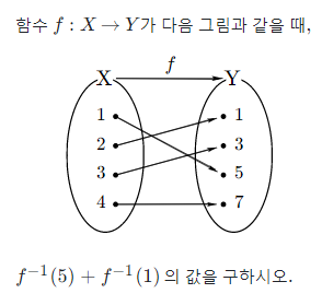 함수 f:X→Y에 대한 그림을 보고 역함수의 값을 찾는 문제입니다. 문제를 함께 풀어보도록 하겠습니다.