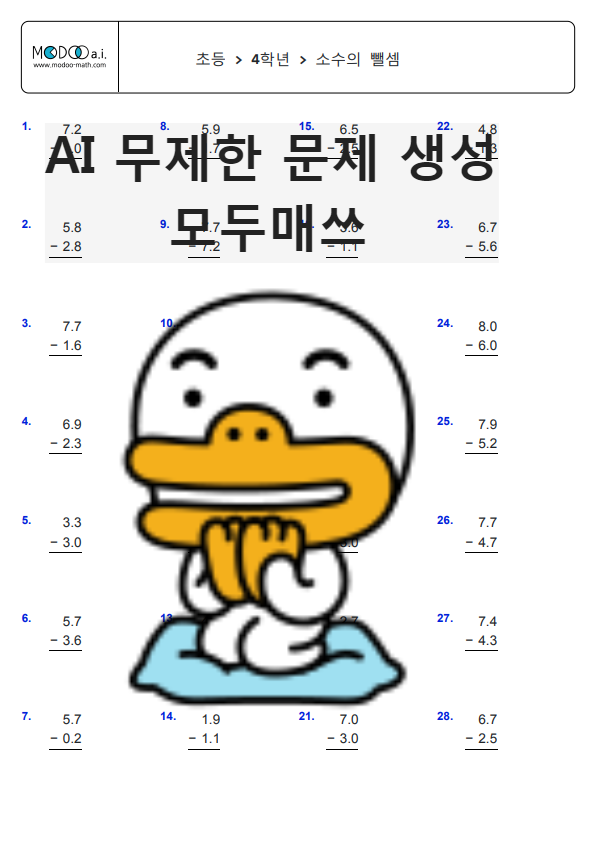 초4 수학 > 소수 한 자리수 덧셈 (소수의 덧셈) 프린트 학습지 (0) | 2022.10.09 |