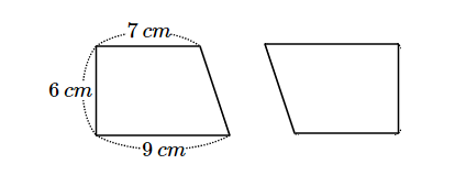 직사각형의 넓이는 = (7 + 9) × 6 = 96 (cm^2)