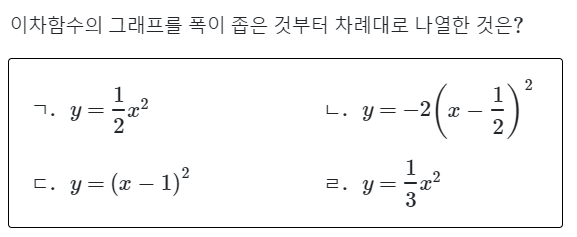 ㄱ.부터 ㄹ.까지 순서대로 이차항의 계수를 나열하면,