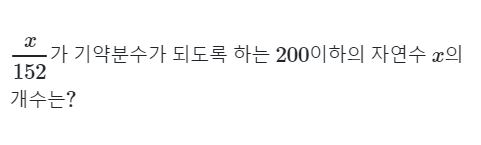 이번 문제는 주어진 자연수 \(x\)에 대해, 분수가 기약분수가 되도록 하는 \(x\)의 개수를 구하는 방법을 알아보는 문제입니다. 주어진 조건을 통해 계산해봅시다.