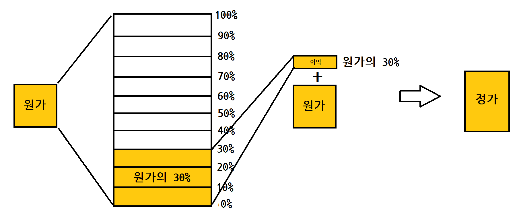 직접 원가의 30%의 이익을 붙이는 것을 그림으로 이해해볼게요.