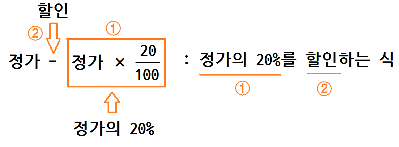 가격을 깎아 준다는 거죠. 그럼 20% 세일(할인)을 그림으로 한 번 보도록 할게요.