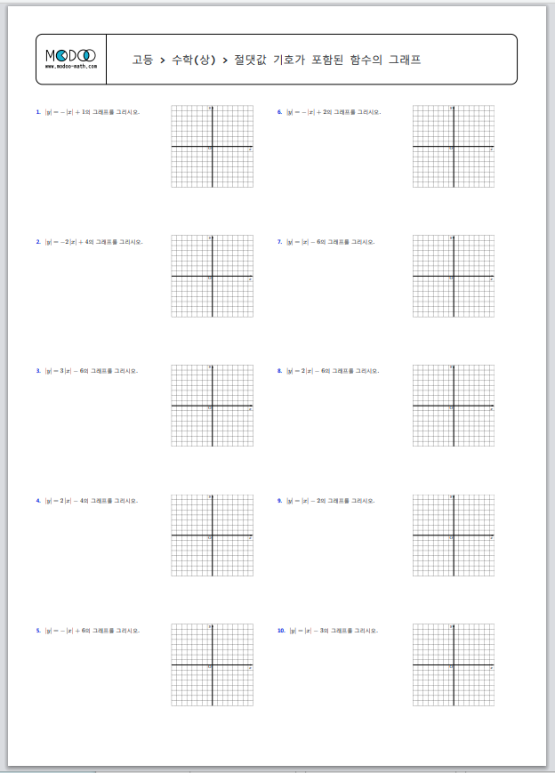 | 절댓값 기호가 포함된 이차함수의 그래프 연습문제 프린트 PDF (0) | 2022.10.20 |