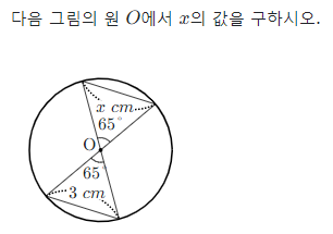 이 문제는 중심각의 크기와 현의 관계를 이용하는 문제예요. 여기서 주의해야할 것은 현과 중심각은 정비례관계는 아니지만 같은 중심각의 크기를 가지면 같은 현의 길이가 되는 건 맞아요.