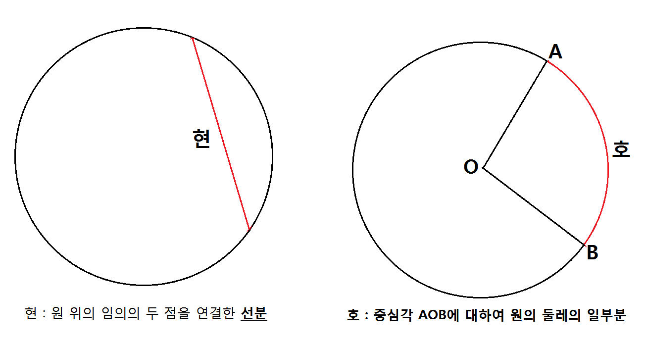부채꼴은 쉽게 말해 원의 일부분이에요. 이때 아무렇게나 일부부은 아니고 원의 중심을 반드시 포함하고 있고 반지름과 호로 둘러싸여 있어야 해요.