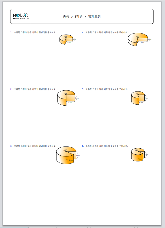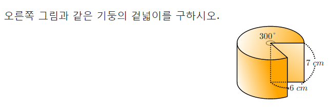 이번에는 일부분이 잘라진 원기둥의 넓이를 구하도록 할게요.