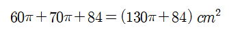 먼저 긴 직사각형의 넓이는 가로의 길이가 부채꼴의 호의 길이와 같으므로 10π이고 세로의 길이가 7 cm이므로