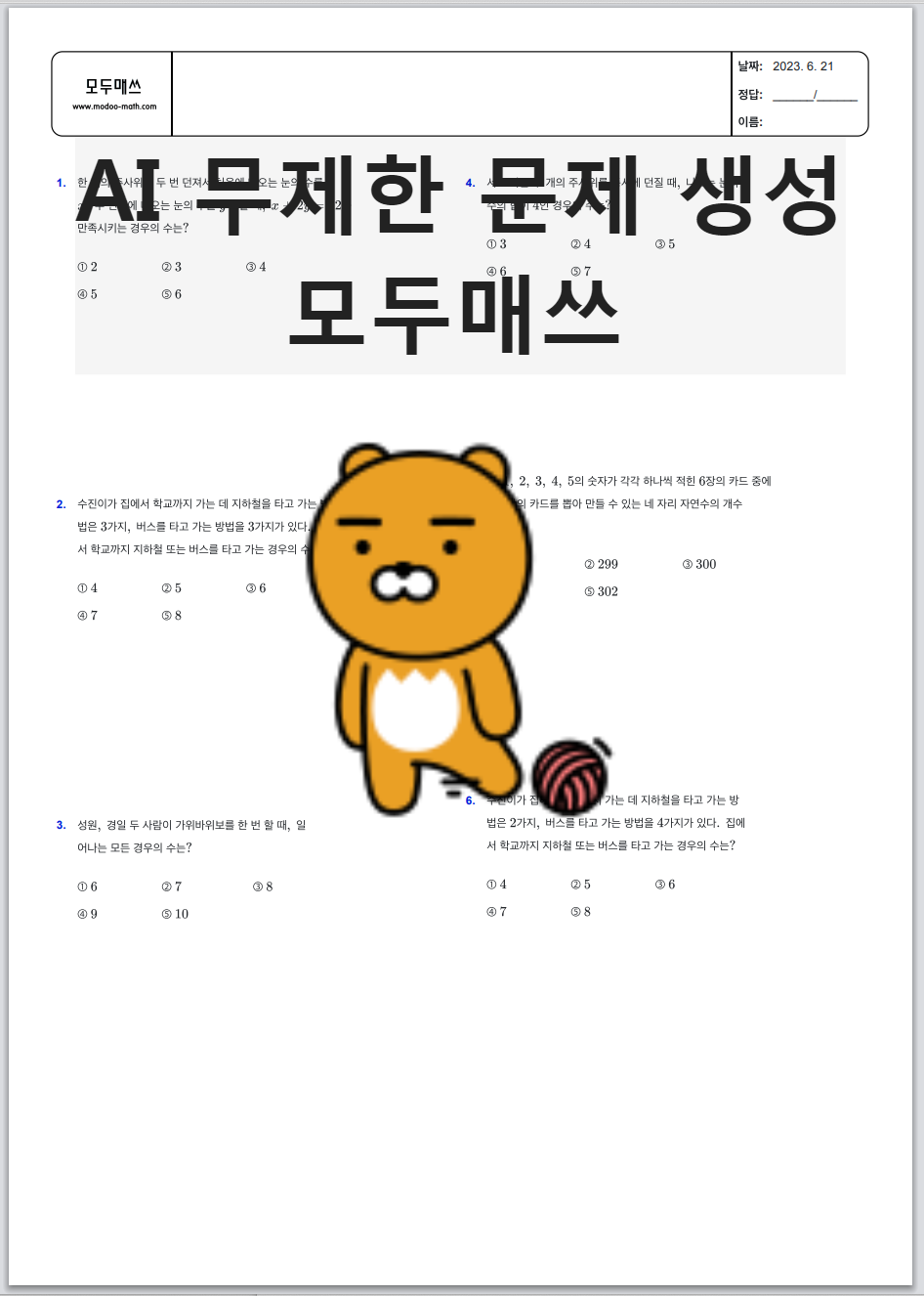 ModooMath - 무제한으로 만들어지는 수학 문제 학습지