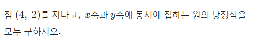 이 문제는 x축과 y축에 동시에 접하는 원의 방정식을 구하는 문제입니다.